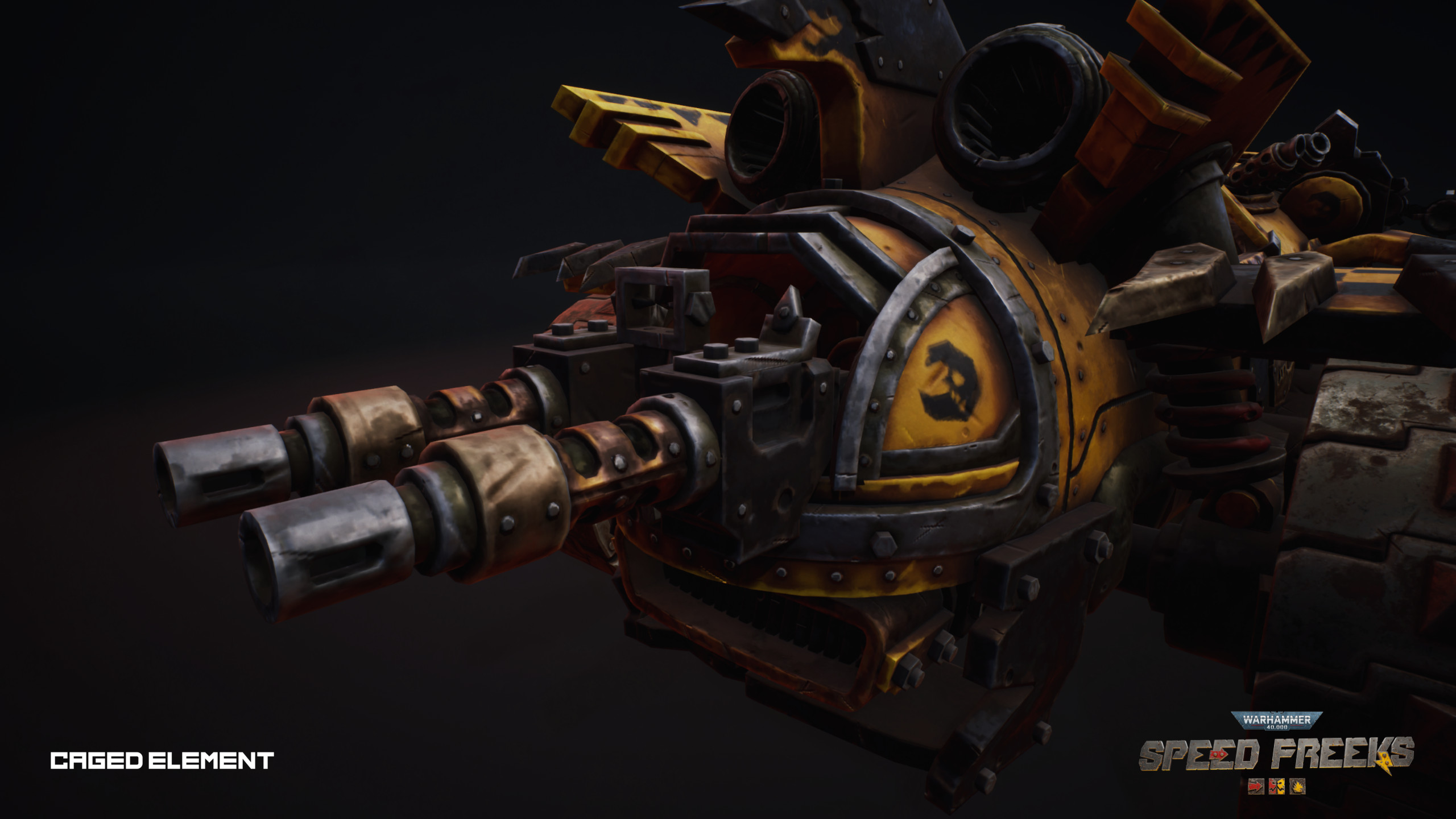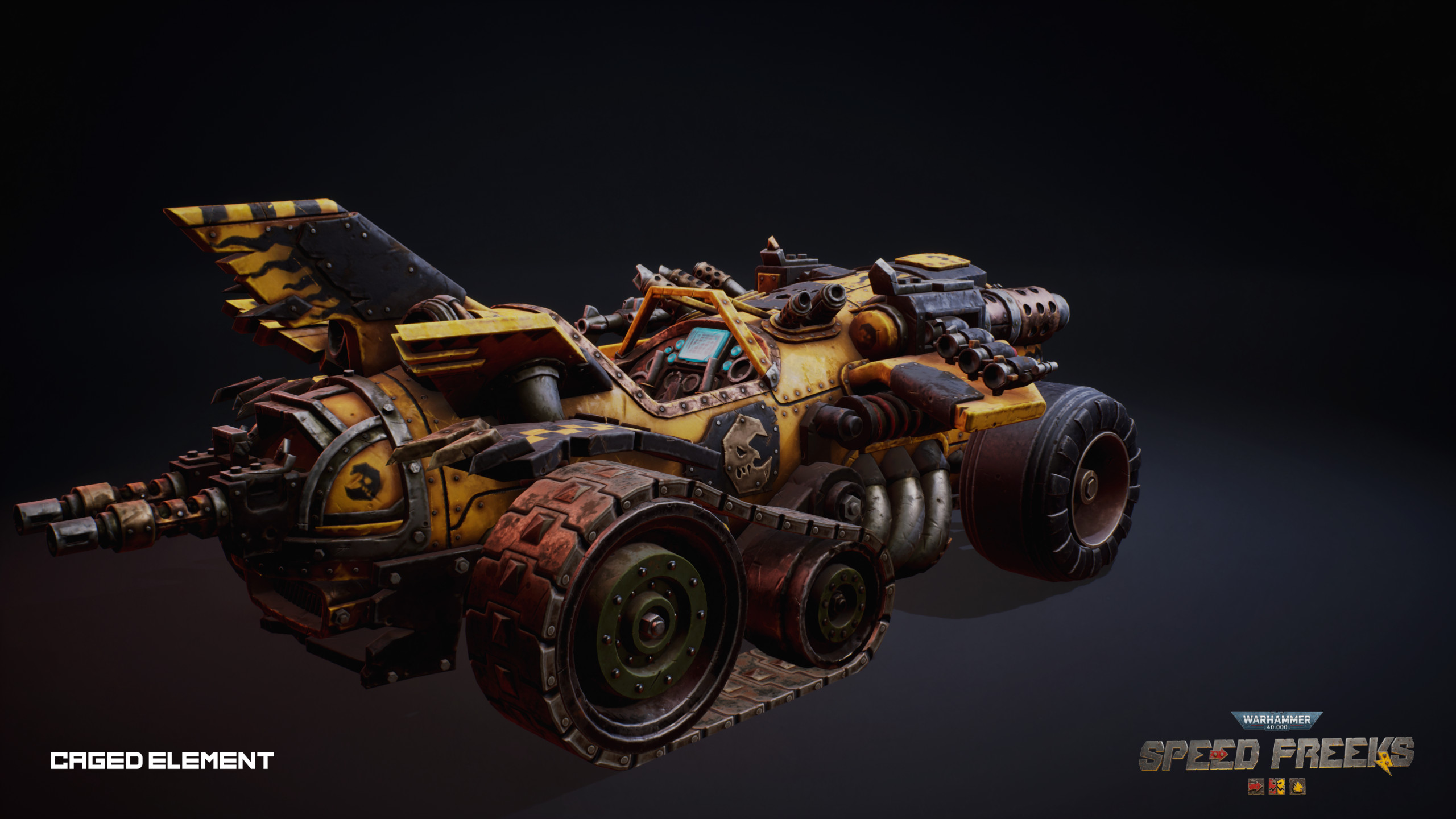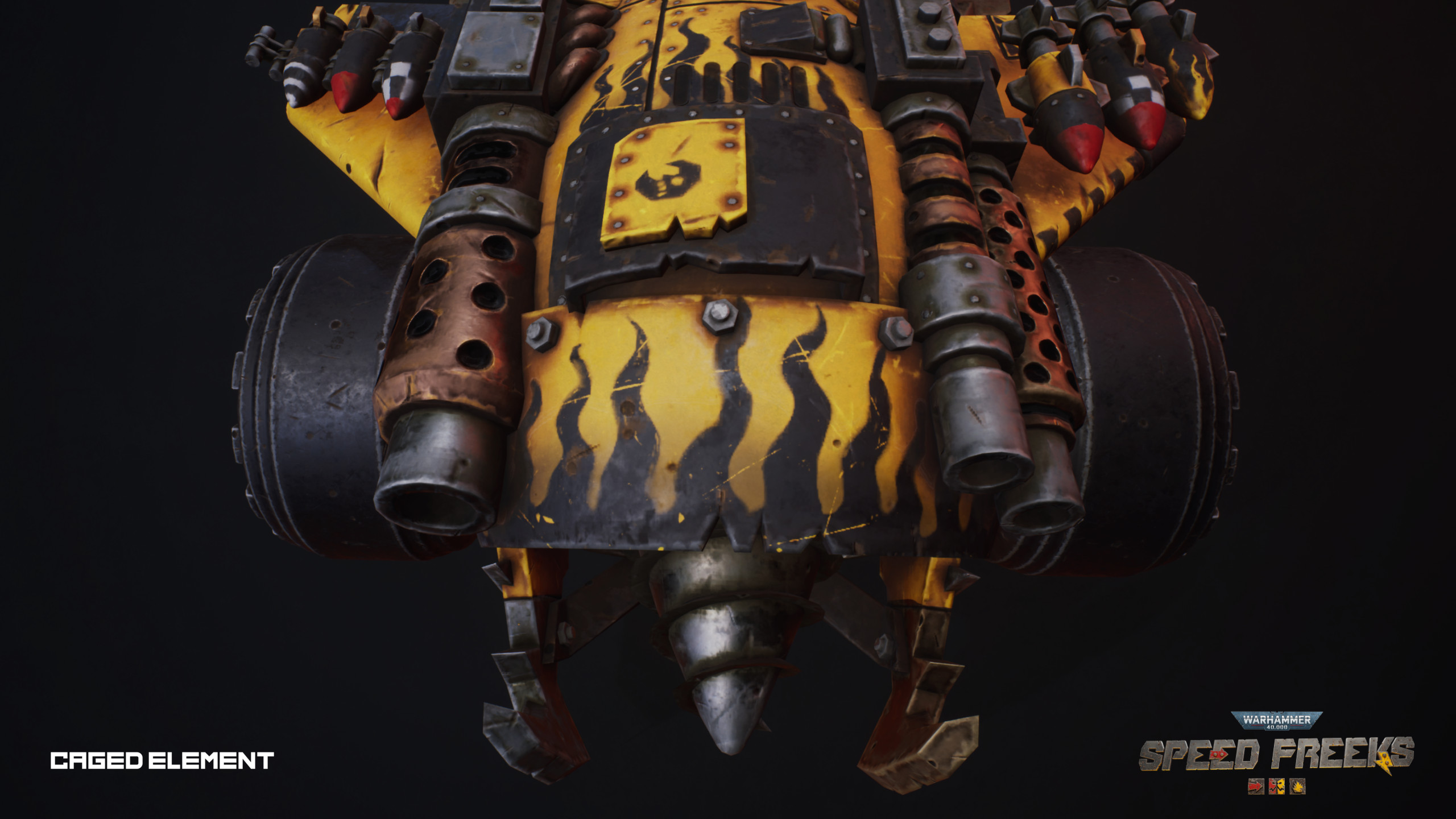During the development of Warhammer 40K Speed Freeks I was responsible to make a Megatrakk Scrapjet variant that's themed in a Bad Moonz clan aesthetic while maintaining the iconic silhouette of the Scrapjet.