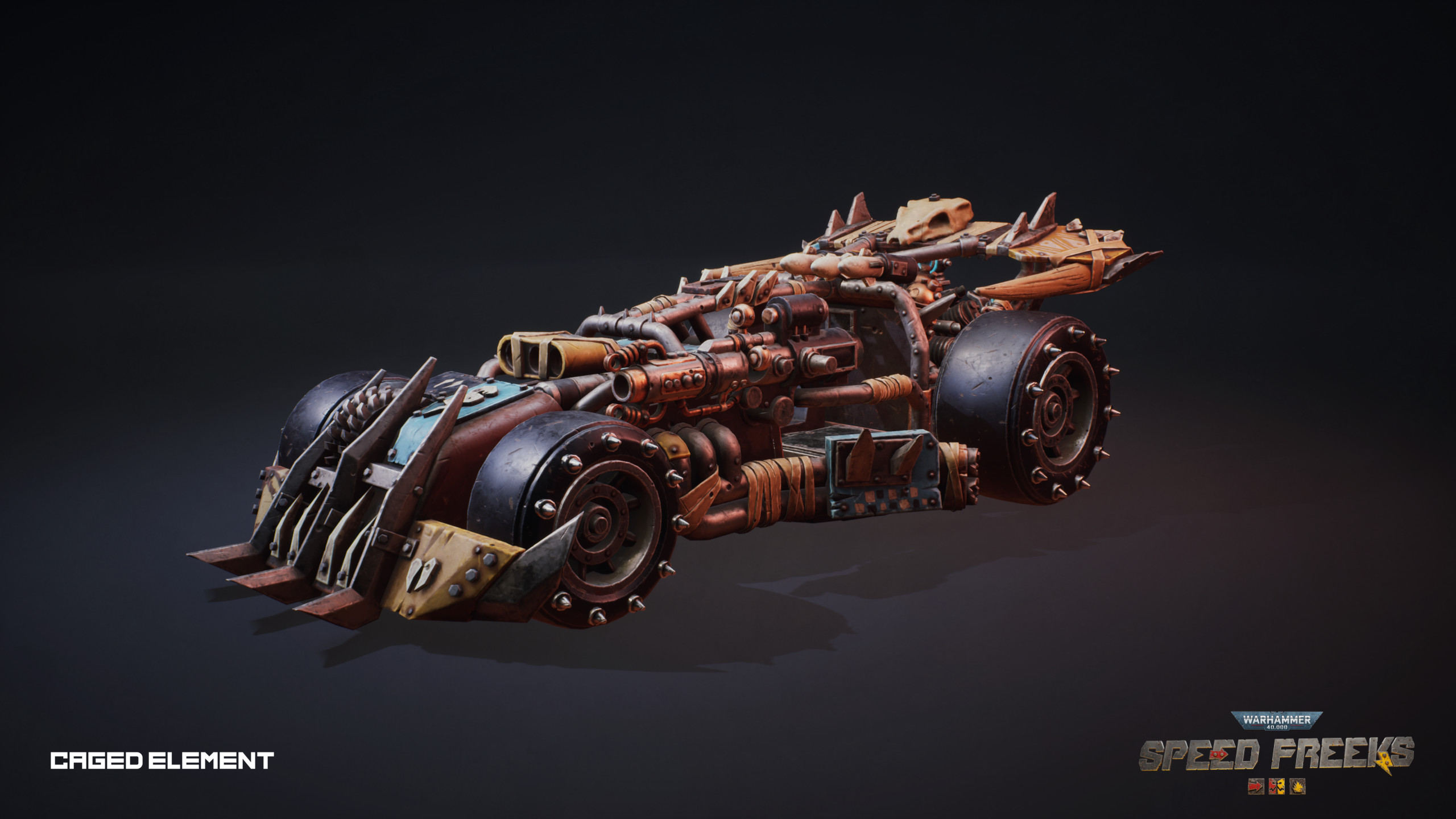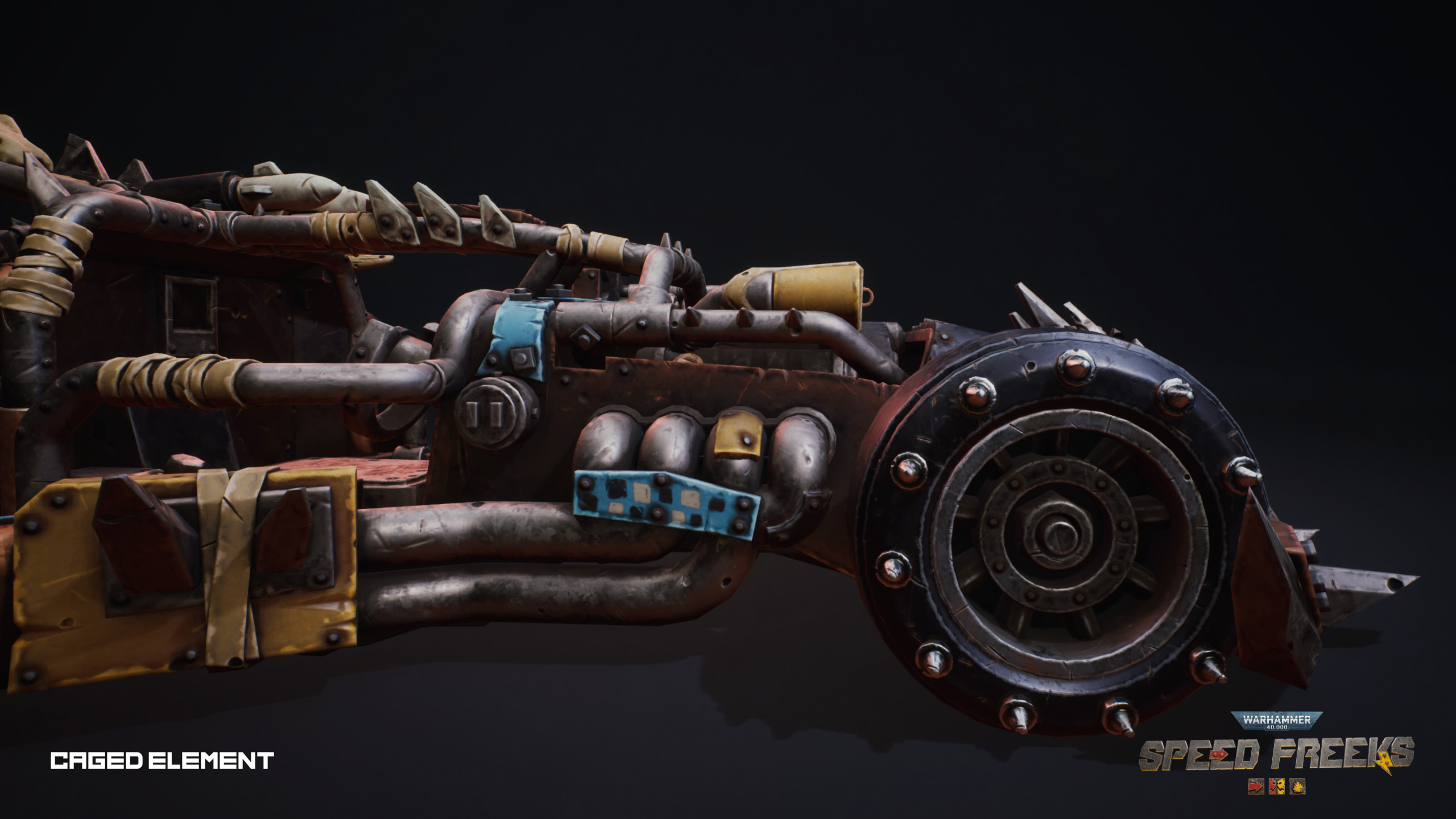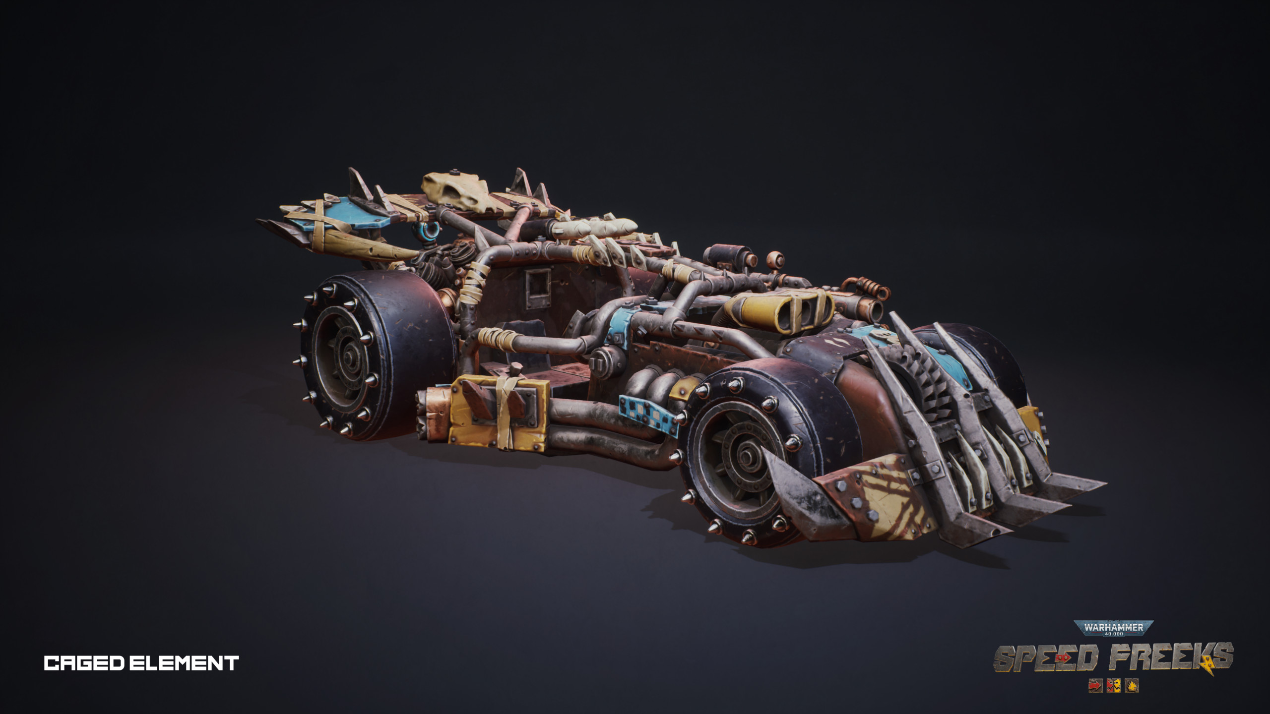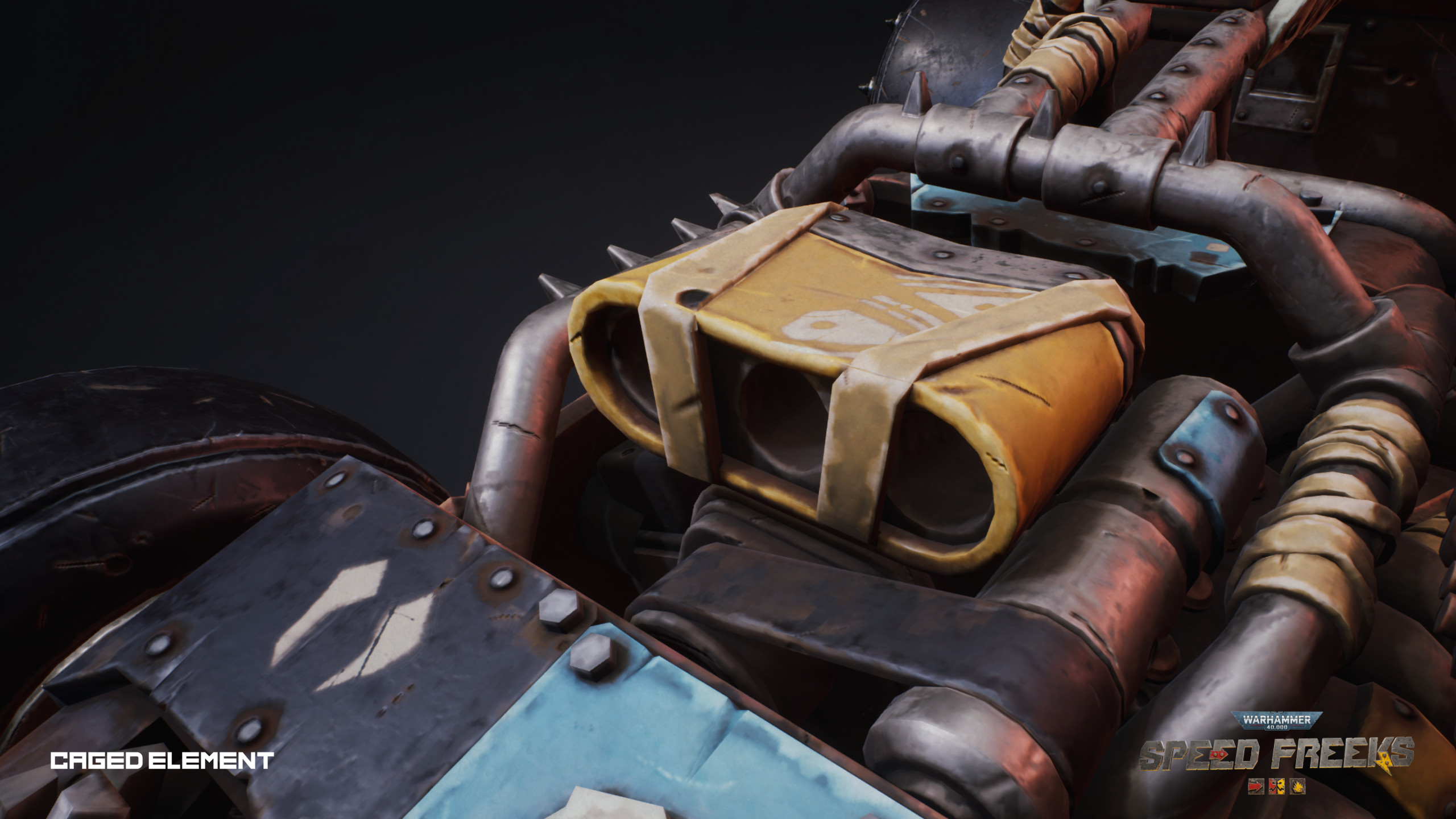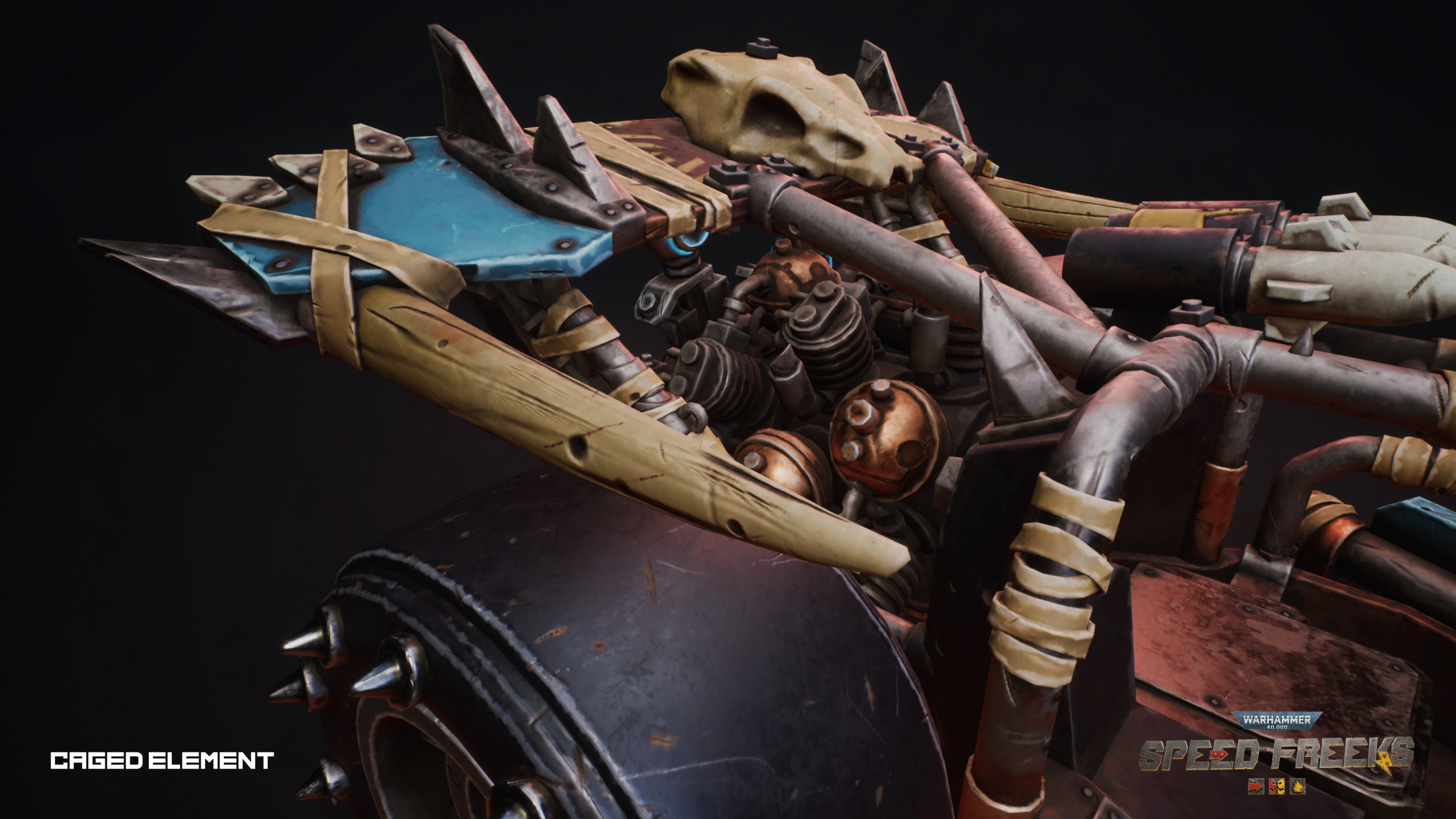 During the development of Warhammer 40K Speed Freeks I was responsible for modelling and texturing the Shokkjump Dragsta Snakebites, Maintaining the iconic silhouette of the original miniature while blending it with Snakebites specific design elements.