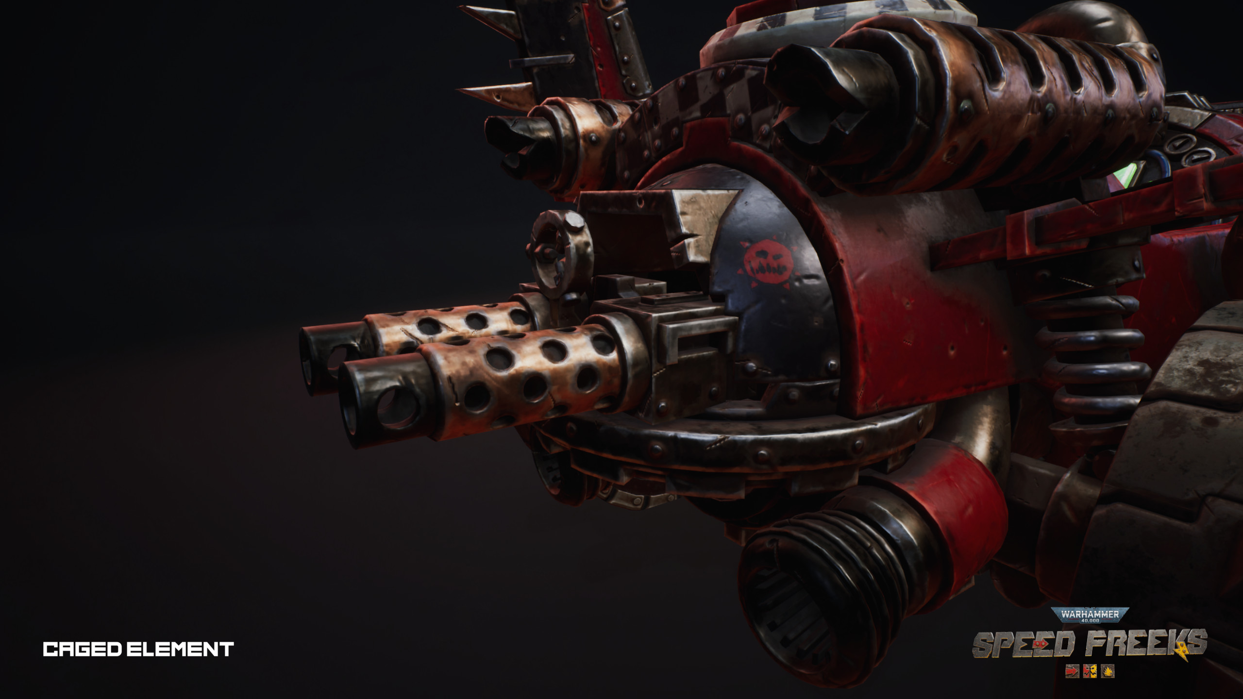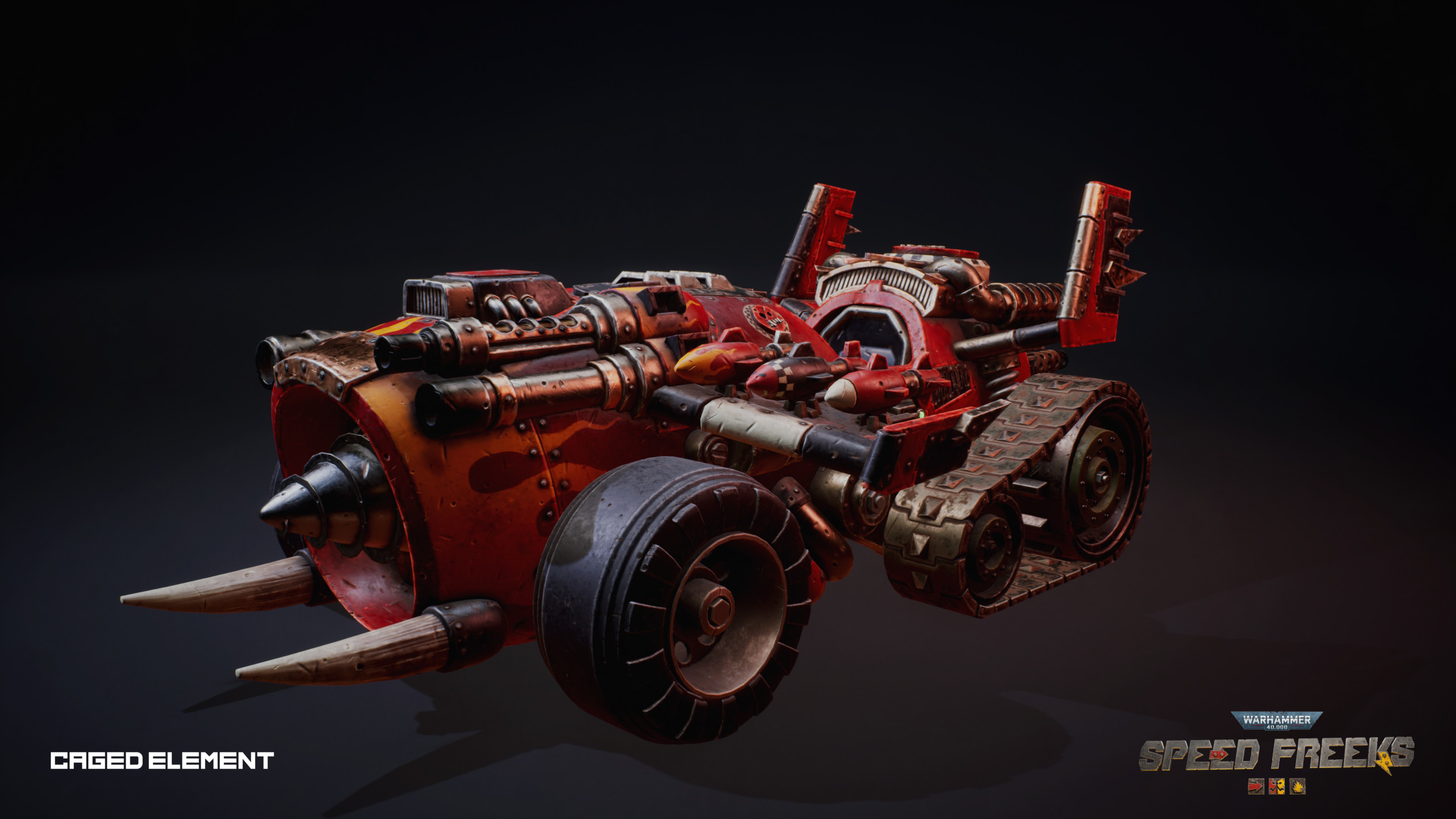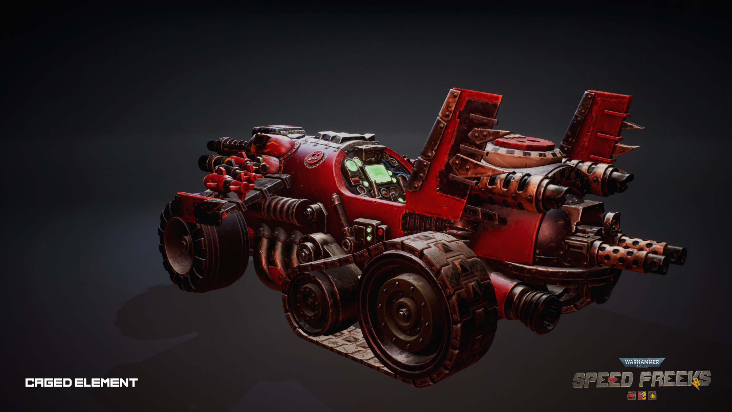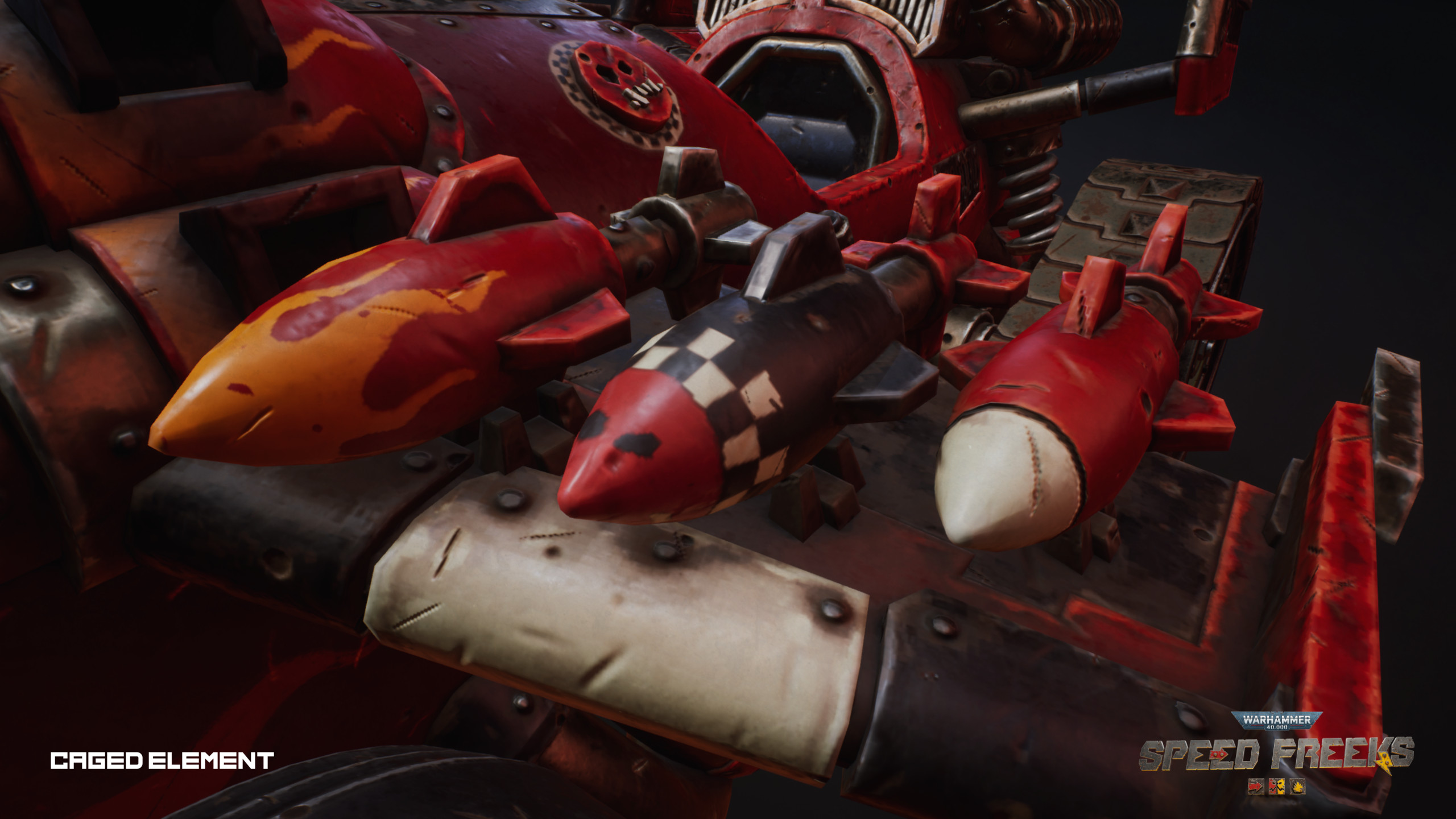 During the development of Warhammer 40K Speed Freeks I was responsible to make a Megatrakk Scrapjet variant that's themed in a Evil Sunz clan aesthetic while maintaining the iconic silhouette of the Scrapjet.