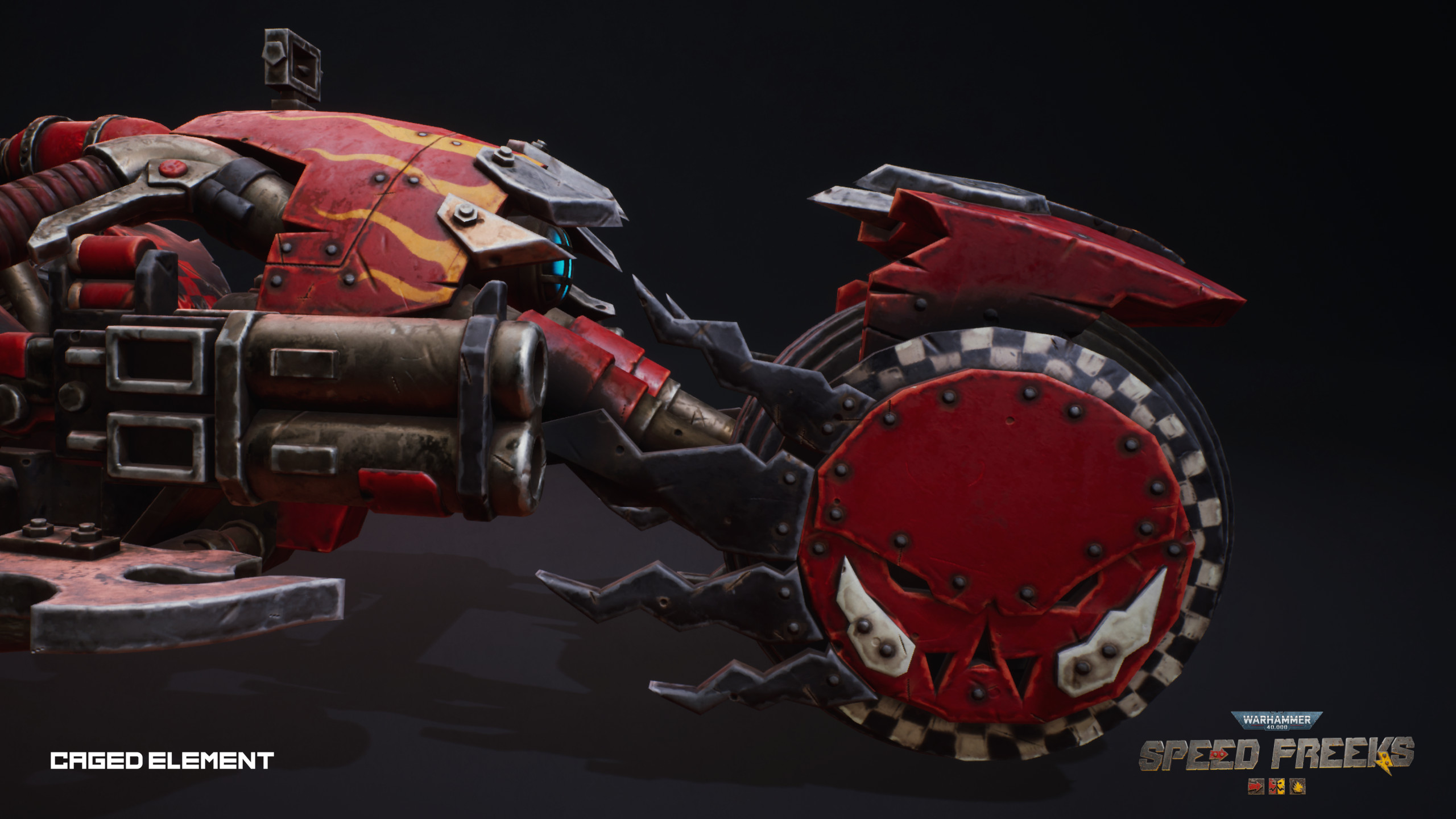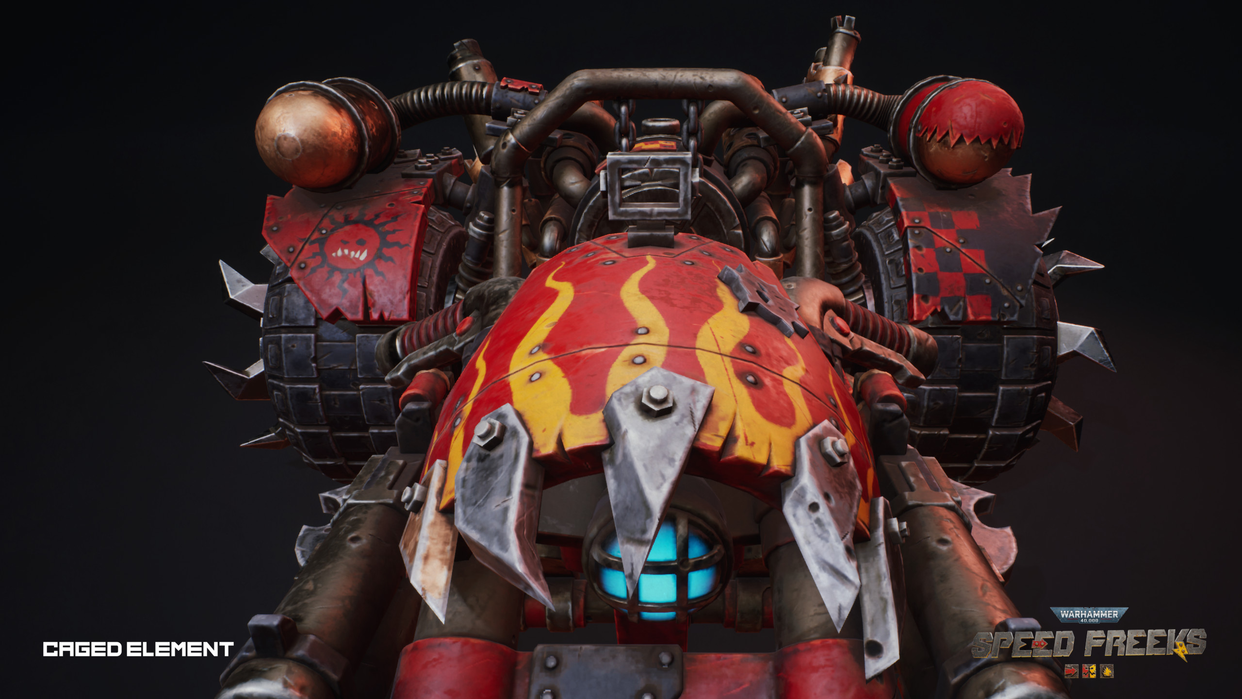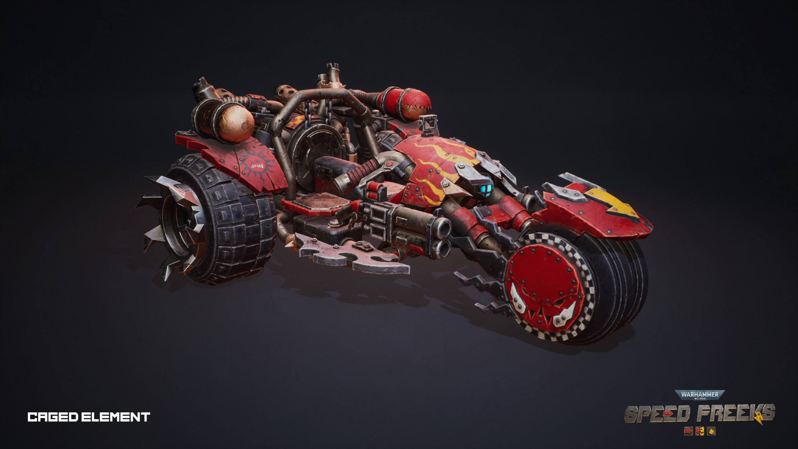 During the development of Warhammer 40K Speed Freeks I was responsible to make a Defkilla Wartrike variant that's themed in a Evil Sunz clan aesthetic while maintaining the iconic silhouette of the Defkilla Wartrike.