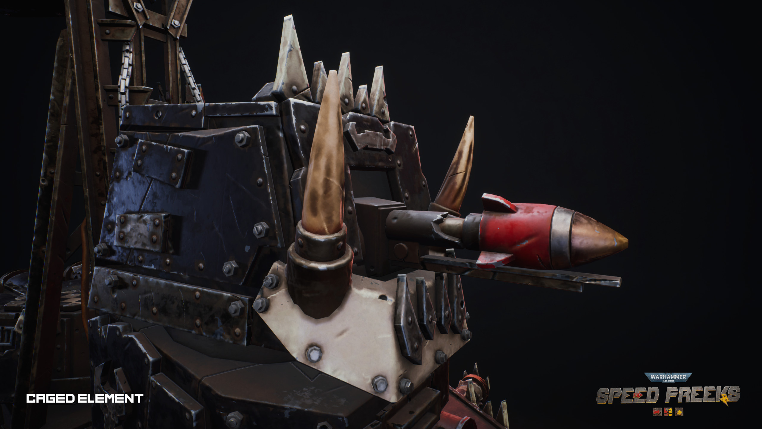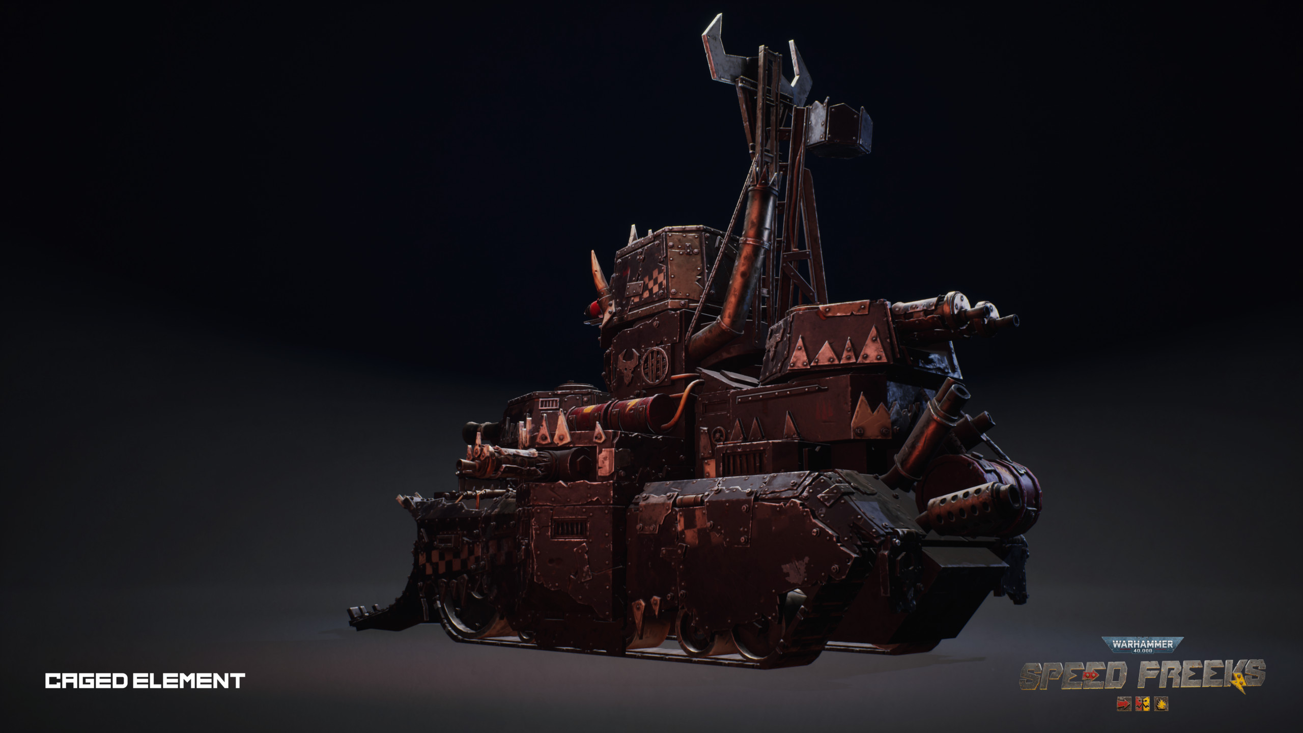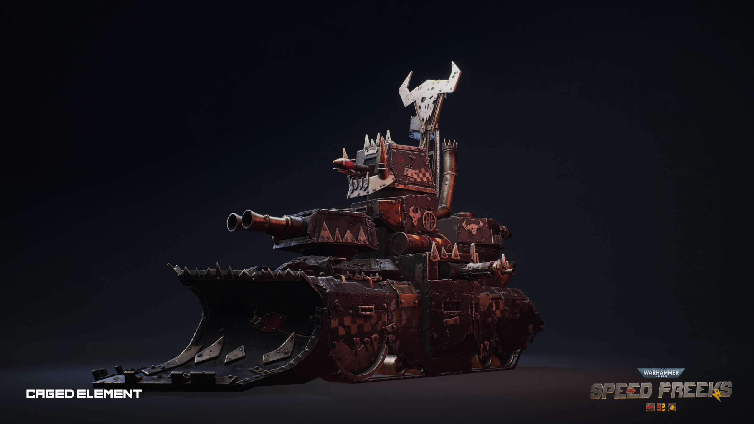 During the development of Warhammer 40K Speed Freeks I was responsible to make a Grot Megatank variant that's themed in a Goff aesthetic while maintaining the iconic silhouette.