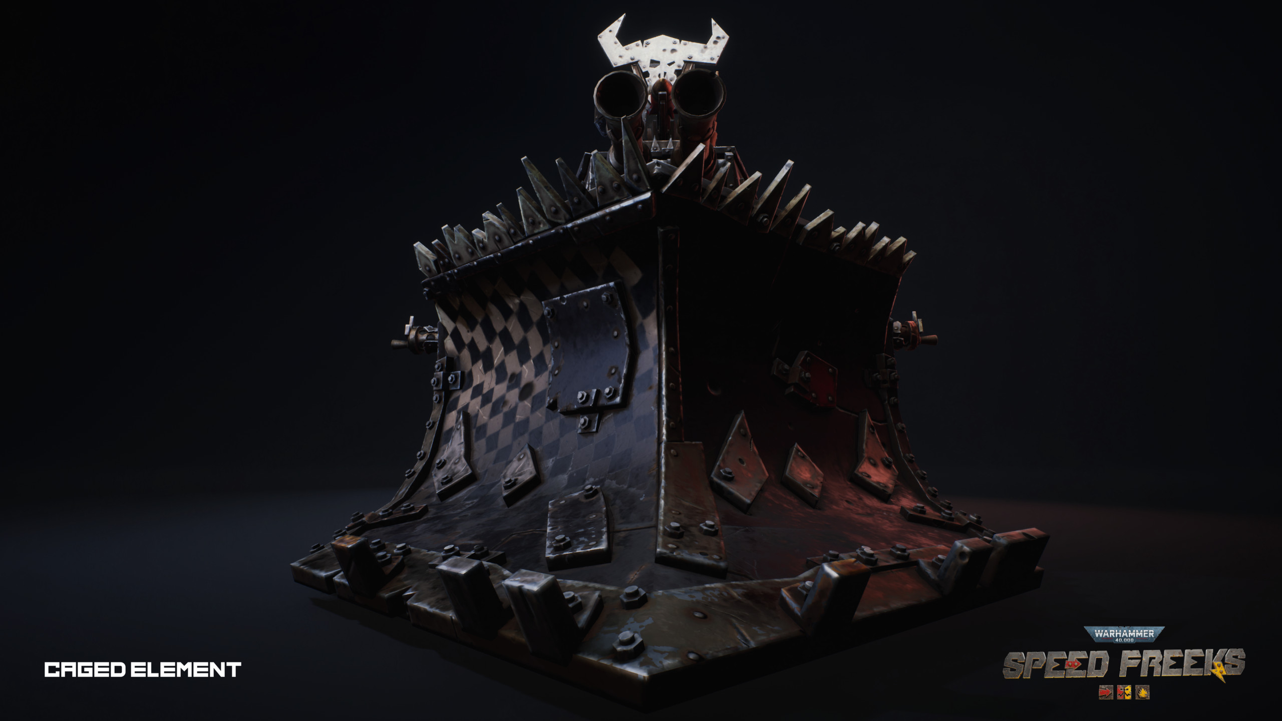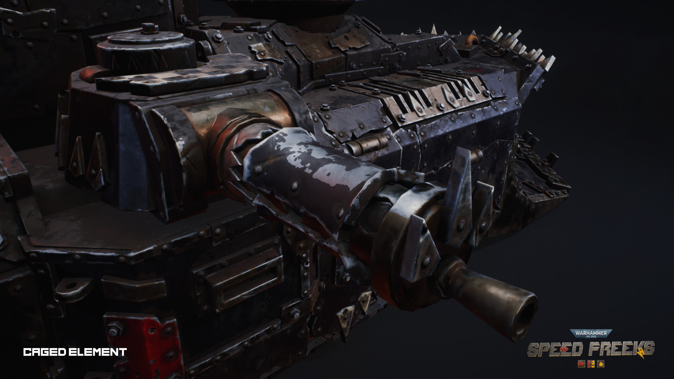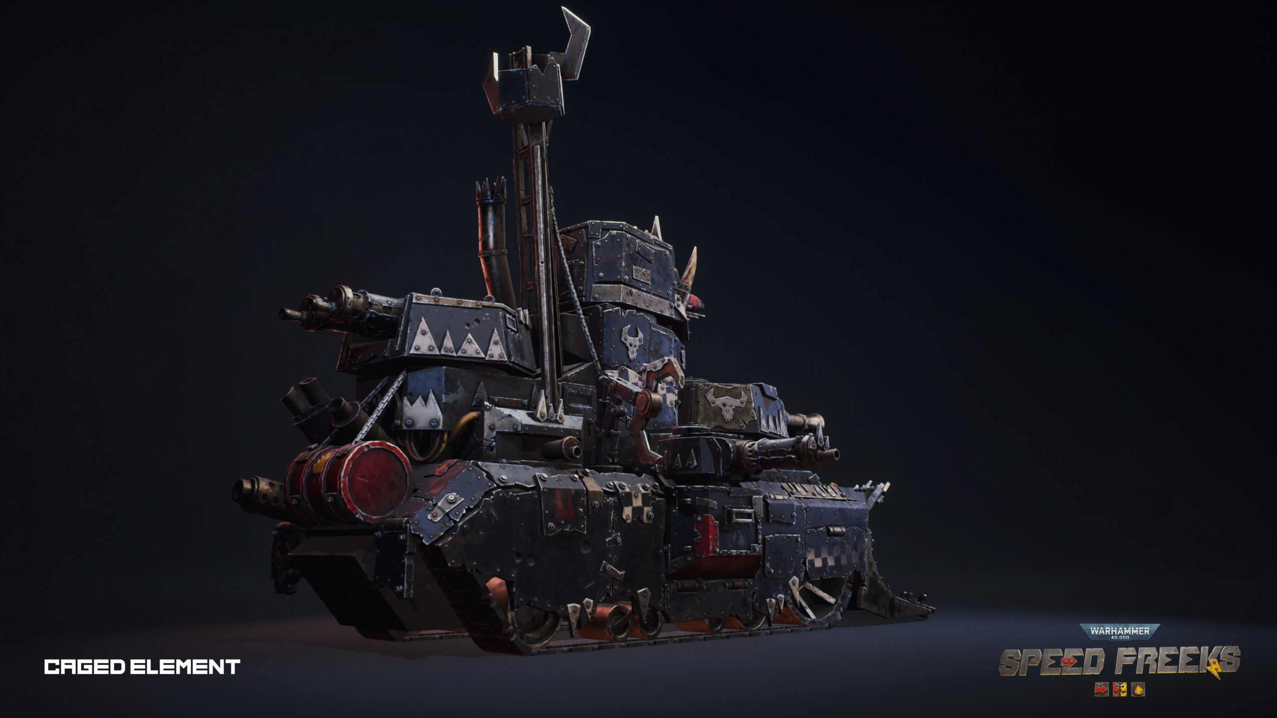 During the development of Warhammer 40K Speed Freeks I was responsible to make a Grot Megatank variant that's themed in a Goff aesthetic while maintaining the iconic silhouette.