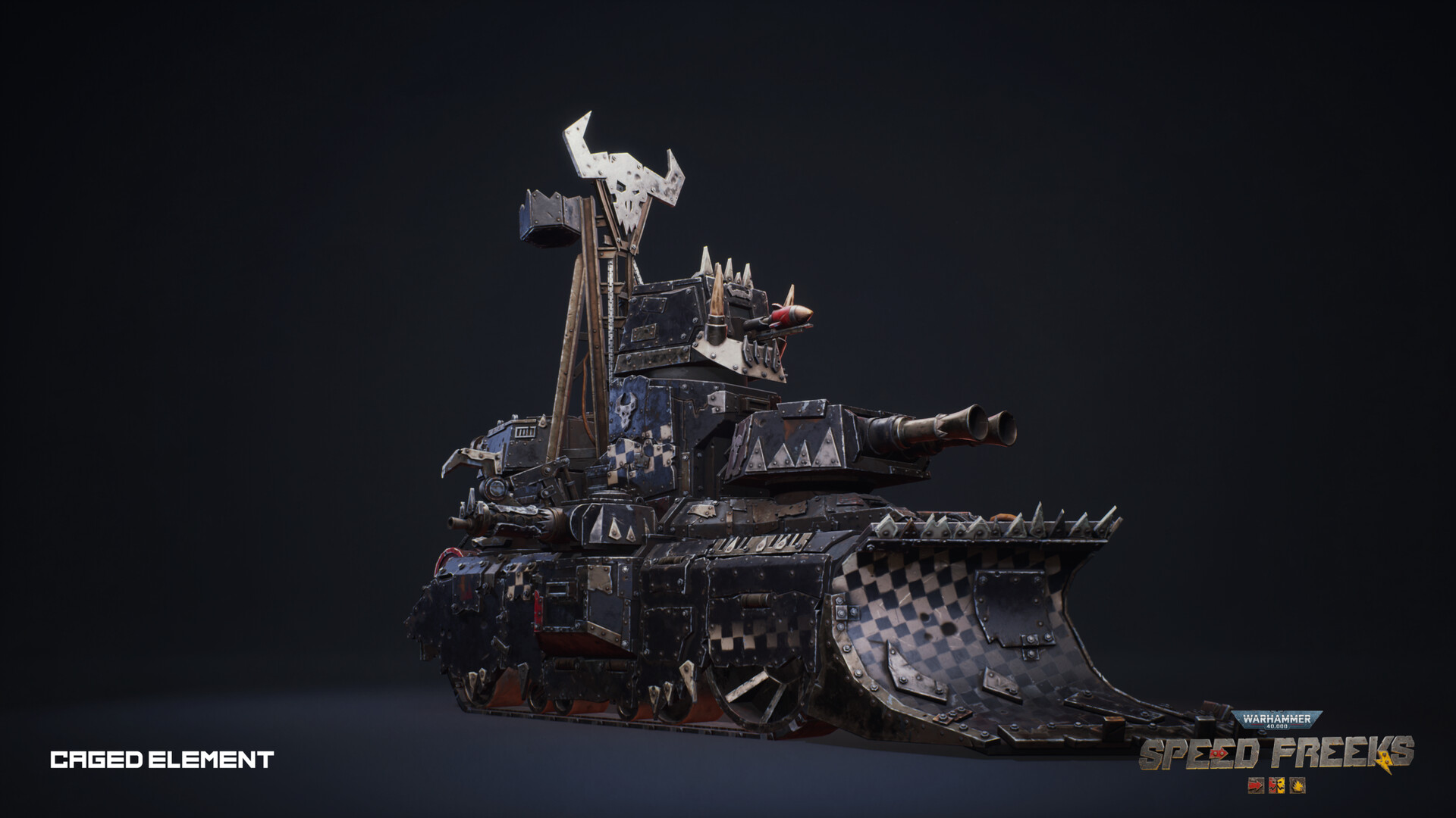 During the development of Warhammer 40K Speed Freeks I was responsible to make a Grot Megatank variant that's themed in a Goff aesthetic while maintaining the iconic silhouette.
