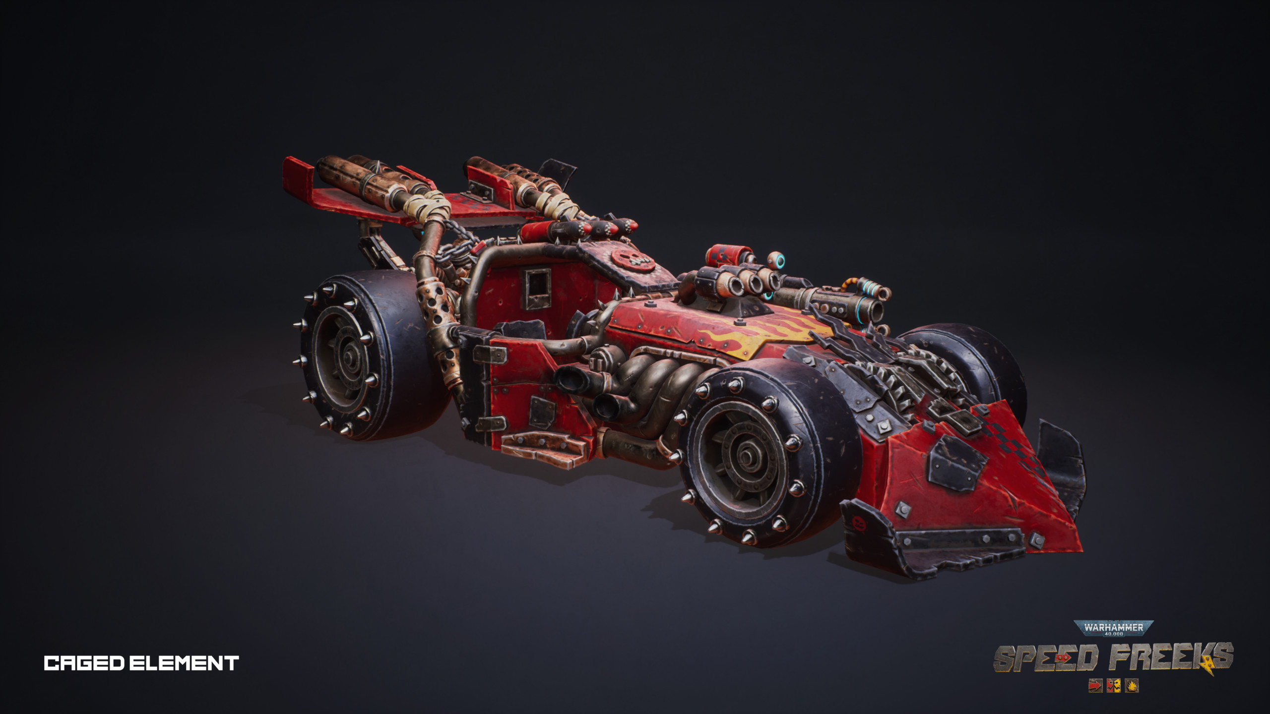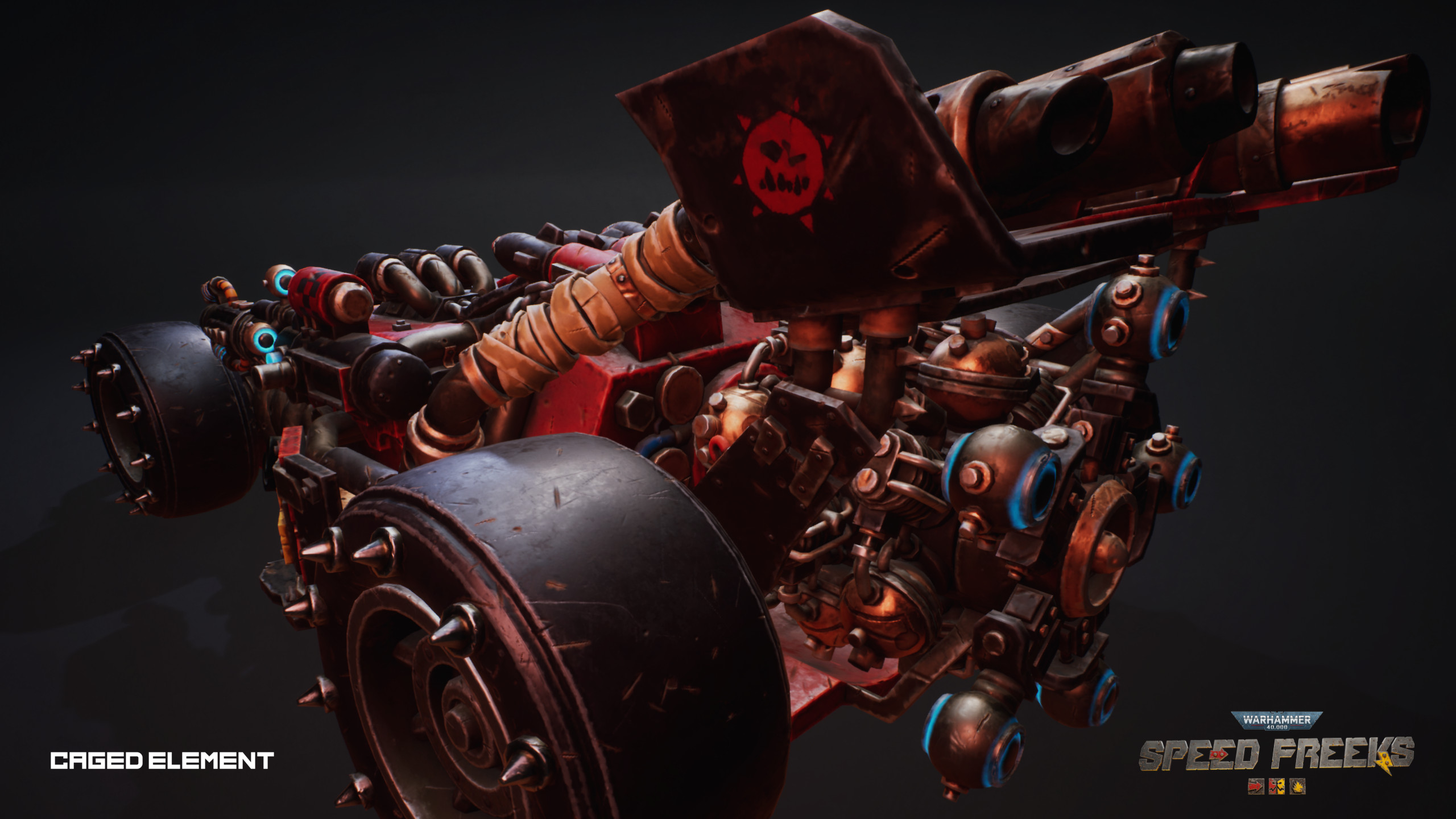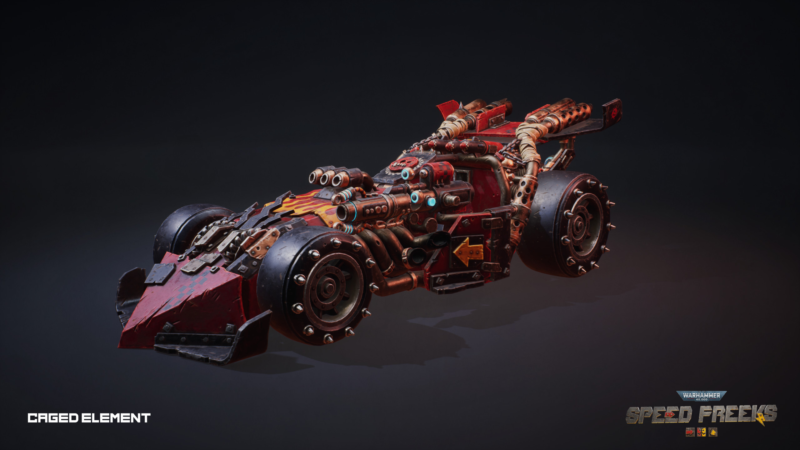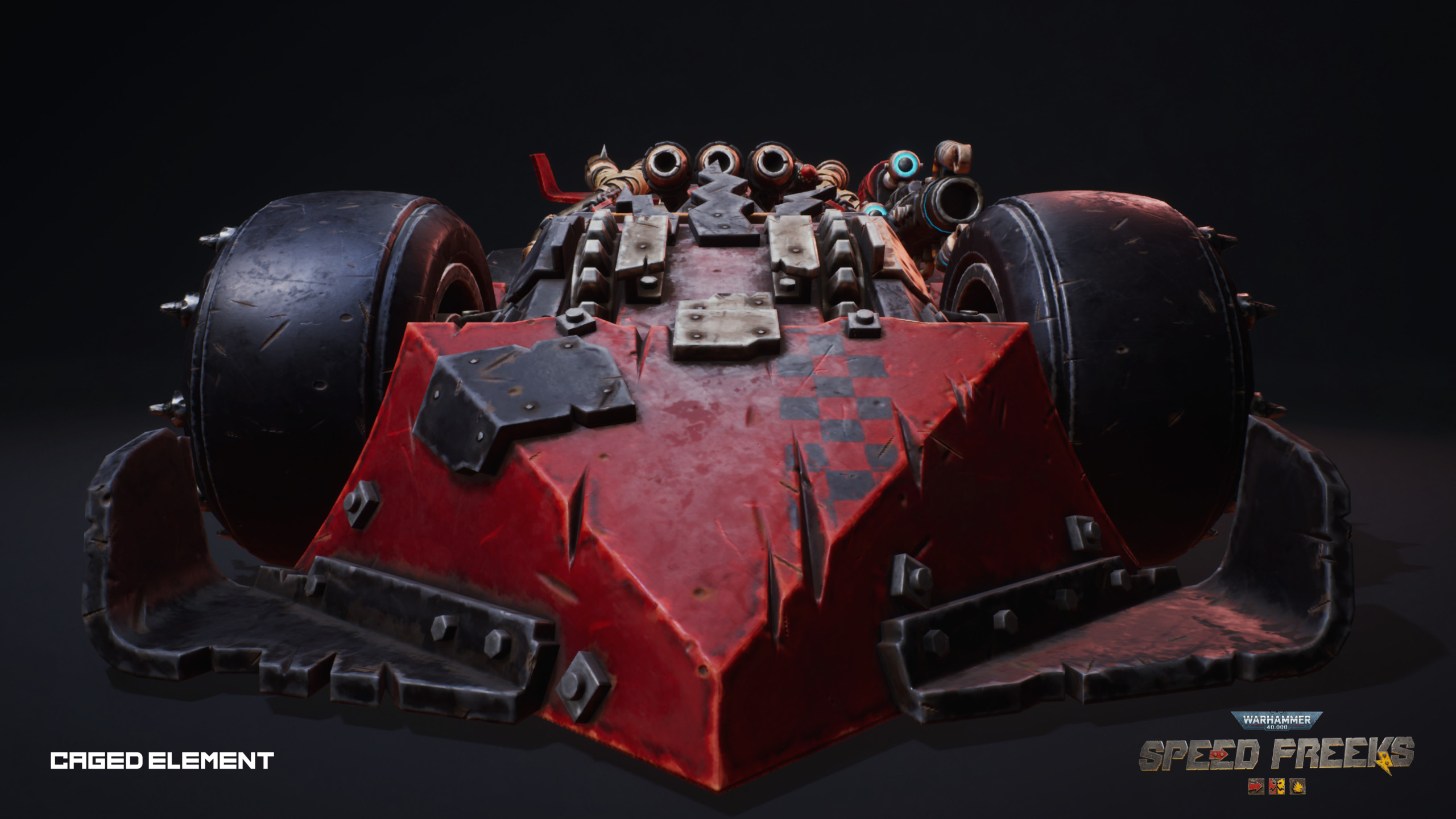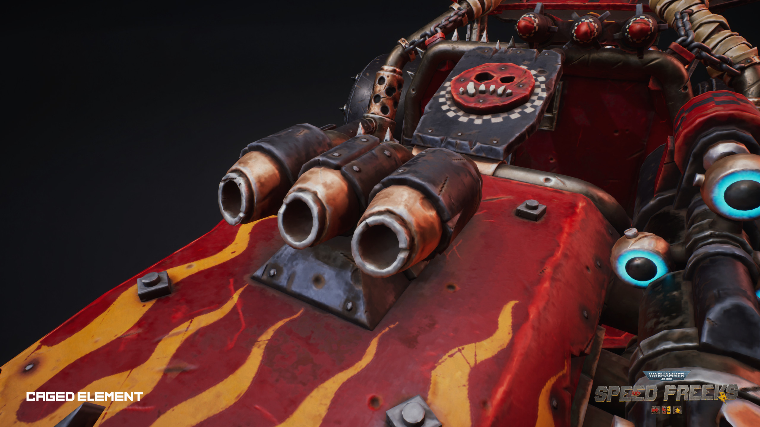 During the development of Warhammer 40K Speed Freeks I was responsible to make a Shokkjump Dragsta variant inspired by the Evil Sunz Clan, bringing in clan iconography and clan related model cues while still maintaining the Shokkjump Dragsta's iconic silhouette.